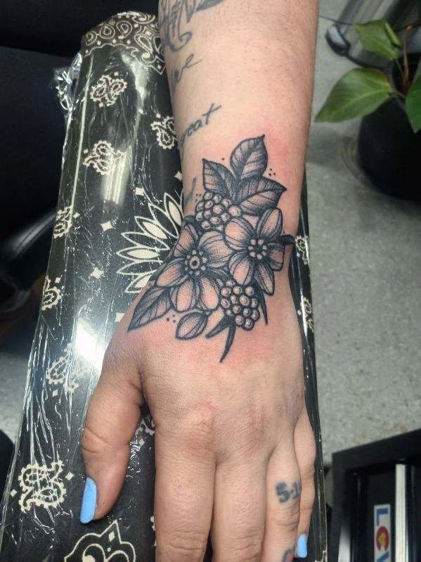 Every Flower needs, more black! Jenny’s style is mainly in blackwork/Stipple style and will boldly hold!